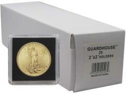 Guardhouse Tetra coin holders are a great storage solution for your individual coins. The clear outer plastic 2x2 snaplock cases contain a black EVA foam interior insert to hold your coin in place and provide a great background. Guardhouse 2x2 coin holders are made from sturdy acrylic plastic and fit 2x2 storage boxes. The 2x2 size allows you to tap into a wide array of accessories designed for 2x2 holders. Sold in packs of 10.