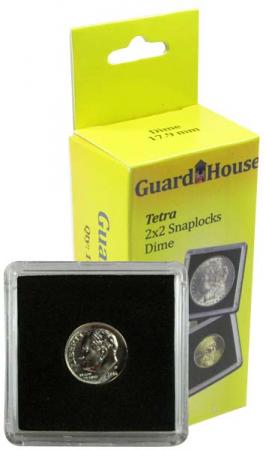 Guardhouse Tetra coin holders are a great storage solution for your individual coins. The clear outer plastic 2x2 snaplock cases contain a black EVA foam interior insert to hold your coin in place and provide a great background. Guardhouse 2x2 coin holders are made from sturdy acrylic plastic and fit 2x2 storage boxes. The 2x2 size allows you to tap into a wide array of accessories designed for 2x2 holders. Sold in packs of 10.