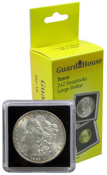 Guardhouse Tetra coin holders are a great storage solution for your individual coins. The clear outer plastic 2x2 snaplock cases contain a black EVA foam interior insert to hold your coin in place and provide a great background. Guardhouse 2x2 coin holders are made from sturdy acrylic plastic and fit 2x2 storage boxes. The 2x2 size allows you to tap into a wide array of accessories designed for 2x2 holders. Sold in packs of 10.
