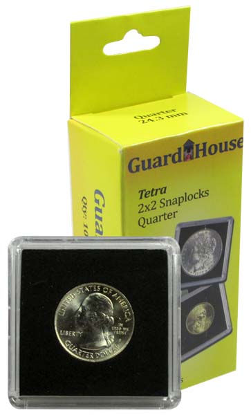 Guardhouse Tetra coin holders are a great storage solution for your individual coins. The clear outer plastic 2x2 snaplock cases contain a black EVA foam interior insert to hold your coin in place and provide a great background. Guardhouse 2x2 coin holders are made from sturdy acrylic plastic and fit 2x2 storage boxes. The 2x2 size allows you to tap into a wide array of accessories designed for 2x2 holders. Sold in packs of 10.