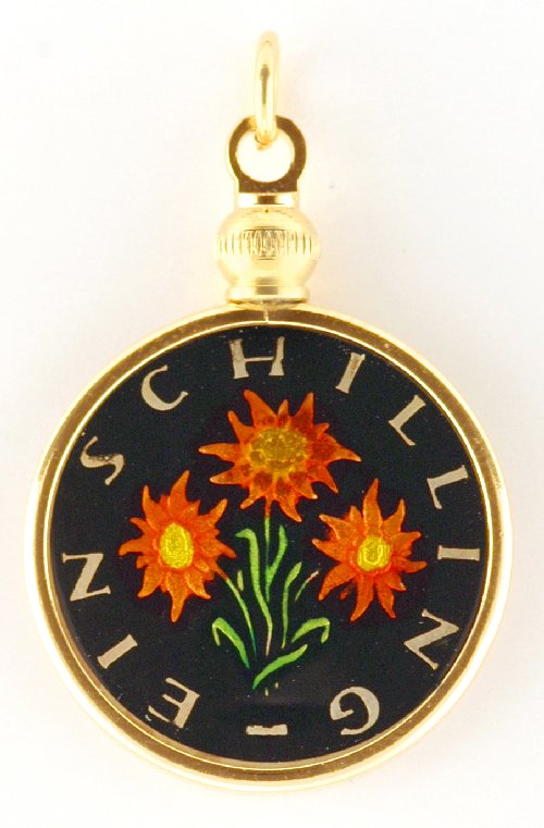 Hand Painted Austria 1 Schilling Daisies Pendant