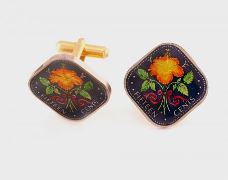 Hand Painted Bahamas 15 Cents Hibiscus Cuff Links