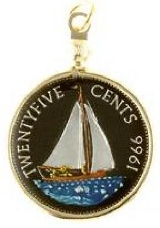 Hand Painted Bahamas 25 Cent Sail Boat Pendant