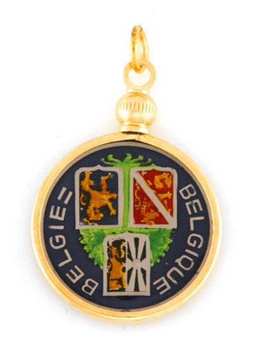 Each piece in our line of hand painted coin and medallion jewelry is crafted from a genuine coin or medallion. The multi-color hand painting comes from a very old art form from a family of artists. This family is the only known family of artists in the United States making these beautiful pieces, each of which is a gift or keepsake to treasure forever. The artists of this family have carefully selected each coin and medallion and, choosing from a selection of miniature curved and straight brushes, hand painted every minute detail that already existed on the coin or medallion. In painstaking fashion, the artists have applied color initially to the background to outline the design, followed by a high tempature firing process. The firing process is repeated after each color is applied. The hand-painting process for each piece varies with some taking as long as two days to complete. In the final stage, in order to protect the delicate hand painting, the artists have applied and baked on a covering of space age plastic, which also adds depth and luster to the item while providing protection forever.