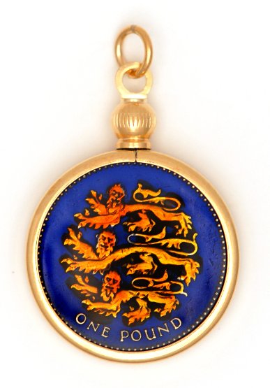 Hand Painted British 1 Pound Lions Pendant