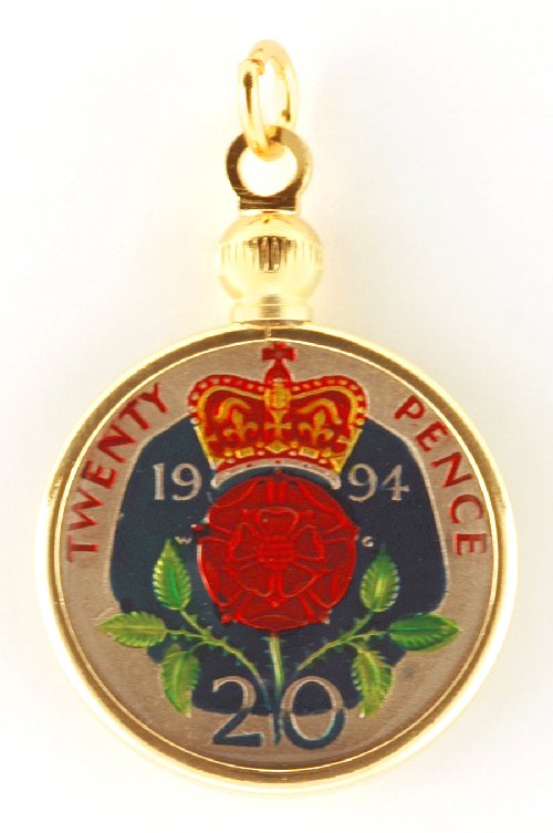 Hand Painted British 20 Pence Pendant
