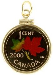 Hand Painted Canada 1 Cent Maple Leaf Pendant