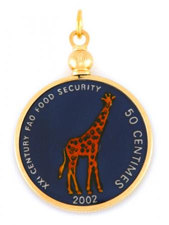 Hand Painted Congo 50 Centimos Giraffe Pendant