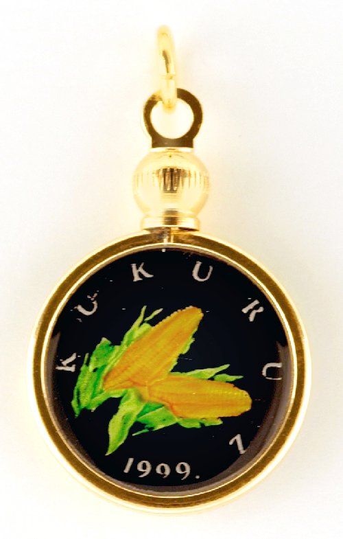 Hand Painted Croatia 1 Lipa Corn Pendant