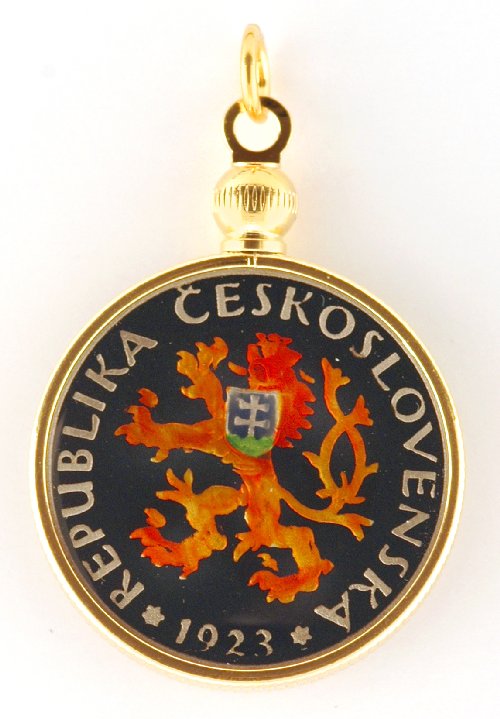 Hand Painted Czech Republic 1 Koruna Lion Pendant