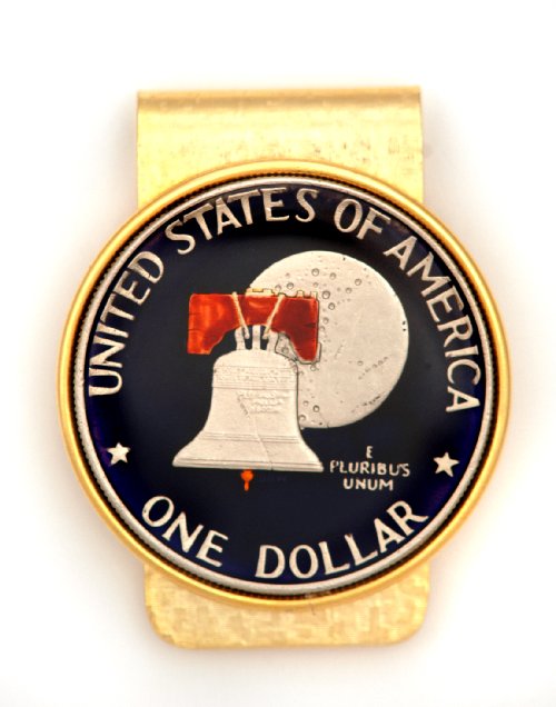 Hand Painted Eisenhower Bicentennial Dollar (Reverse) Money Clip