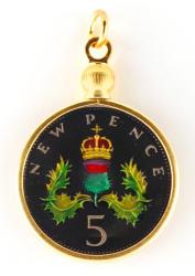 Each piece in our line of hand painted coin and medallion jewelry is crafted from a genuine coin or medallion. The multi-color hand painting comes from a very old art form from a family of artists. This family is the only known family of artists in the United States making these beautiful pieces, each of which is a gift or keepsake to treasure forever. The artists of this family have carefully selected each coin and medallion and, choosing from a selection of miniature curved and straight brushes, hand painted every minute detail that already existed on the coin or medallion. In painstaking fashion, the artists have applied color initially to the background to outline the design, followed by a high tempature firing process. The firing process is repeated after each color is applied. The hand-painting process for each piece varies with some taking as long as two days to complete. In the final stage, in order to protect the delicate hand painting, the artists have applied and baked on a covering of space age plastic, which also adds depth and luster to the item while providing protection forever.