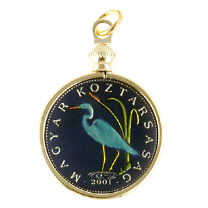 Each piece in our line of hand painted coin and medallion jewelry is crafted from a genuine coin or medallion. The multi-color hand painting comes from a very old art form from a family of artists. This family is the only known family of artists in the United States making these beautiful pieces, each of which is a gift or keepsake to treasure forever. The artists of this family have carefully selected each coin and medallion and, choosing from a selection of miniature curved and straight brushes, hand painted every minute detail that already existed on the coin or medallion. In painstaking fashion, the artists have applied color initially to the background to outline the design, followed by a high tempature firing process. The firing process is repeated after each color is applied. The hand-painting process for each piece varies with some taking as long as two days to complete. In the final stage, in order to protect the delicate hand painting, the artists have applied and baked on a covering of space age plastic, which also adds depth and luster to the item while providing protection forever.