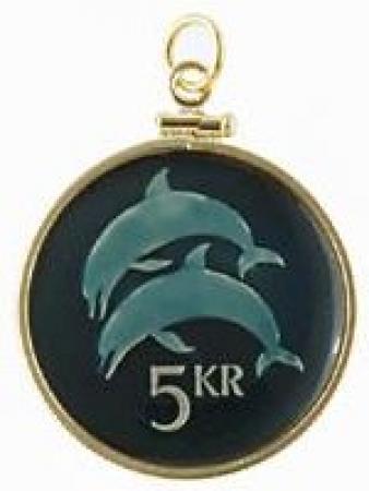 Hand Painted Iceland 5 Kronur Dolphin Pendant