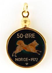 Each piece in our line of hand painted coin and medallion jewelry is crafted from a genuine coin or medallion. The multi-color hand painting comes from a very old art form from a family of artists. This family is the only known family of artists in the United States making these beautiful pieces, each of which is a gift or keepsake to treasure forever. The artists of this family have carefully selected each coin and medallion and, choosing from a selection of miniature curved and straight brushes, hand painted every minute detail that already existed on the coin or medallion. In painstaking fashion, the artists have applied color initially to the background to outline the design, followed by a high tempature firing process. The firing process is repeated after each color is applied. The hand-painting process for each piece varies with some taking as long as two days to complete. In the final stage, in order to protect the delicate hand painting, the artists have applied and baked on a covering of space age plastic, which also adds depth and luster to the item while providing protection forever.