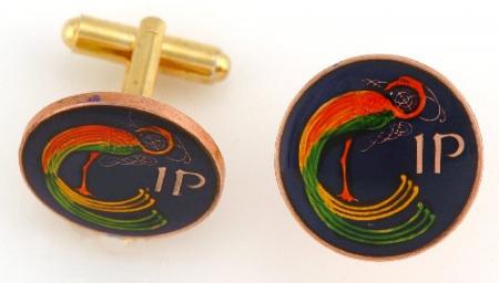 Hand Painted Ireland 1 Penny Celtic Bird Cuff Links