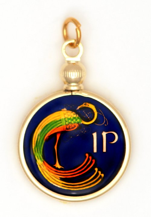 Hand Painted Ireland 1 Penny Celtic Bird Pendant
