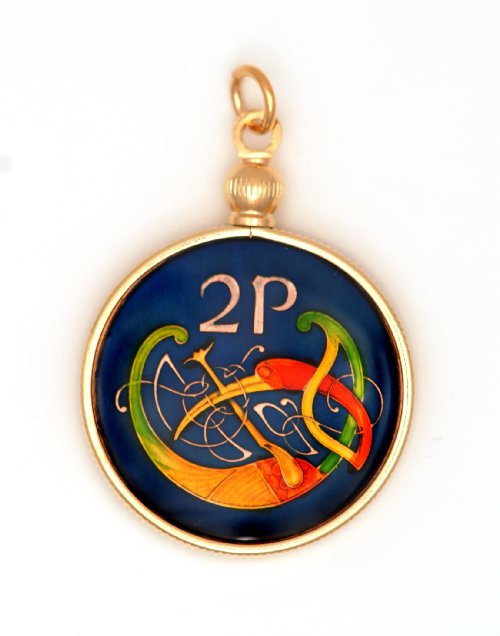 Hand Painted Ireland 2 Pence Celtic Bird Pendant