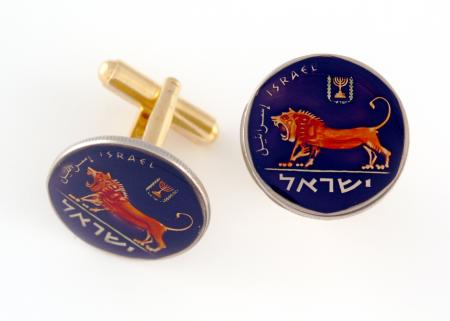 Hand Painted Israel 1/2 Sheqel Lion and Menorah Cuff Links