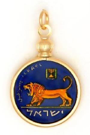 Hand Painted Israel 1/2 Sheqel Lion and Menorah Pendant
