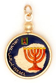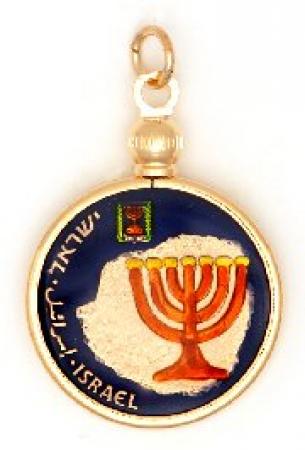 Hand Painted Israel 10 Agorot Menorah on Papyrus Pendant
