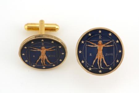 Hand Painted Italy 1 Euro Leonardo Da Vinci Cuff Links