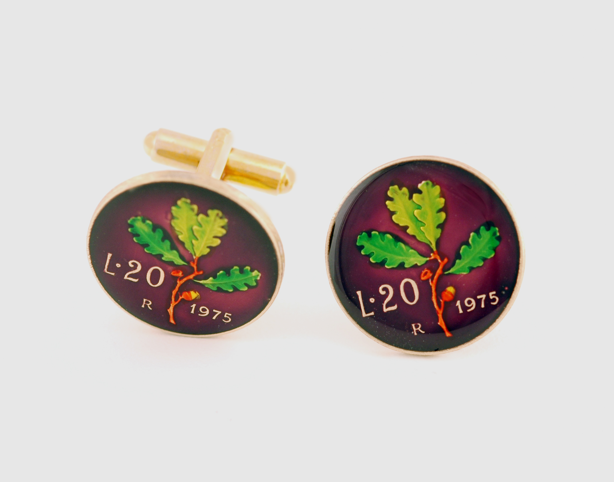 Hand Painted Italy 20 Lire Leaf Cuff Links