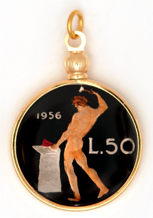 Hand Painted Italy 50 Lire Michaelangelo Pendant