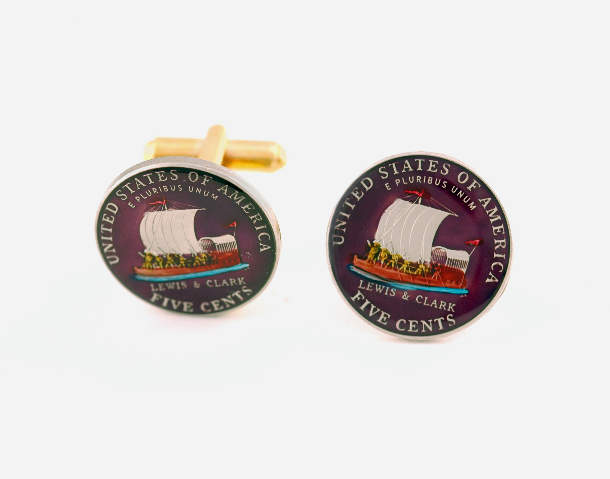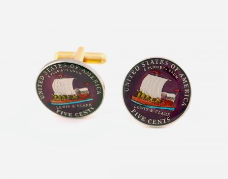 Hand Painted Jefferson Nickel Keelboat Cuff Links