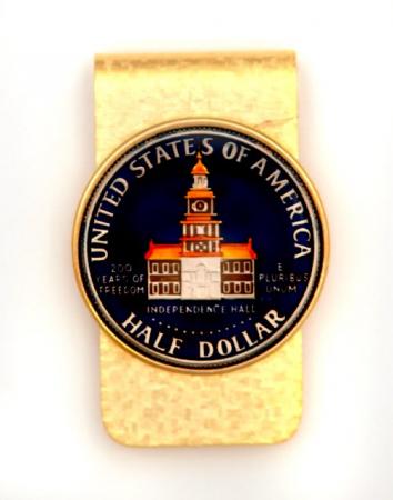 Hand Painted Kennedy Bicentennial Half Dollar (Reverse) Money Clip