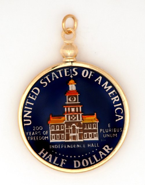 Hand Painted Kennedy Half Dollar Bicentennial Pendant