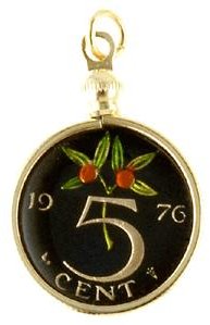 Hand Painted Netherlands 5 Cent Orange Branch Pendant
