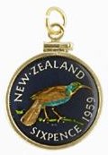 Hand Painted New Zealand 6 Pence Huai Bird Pendant