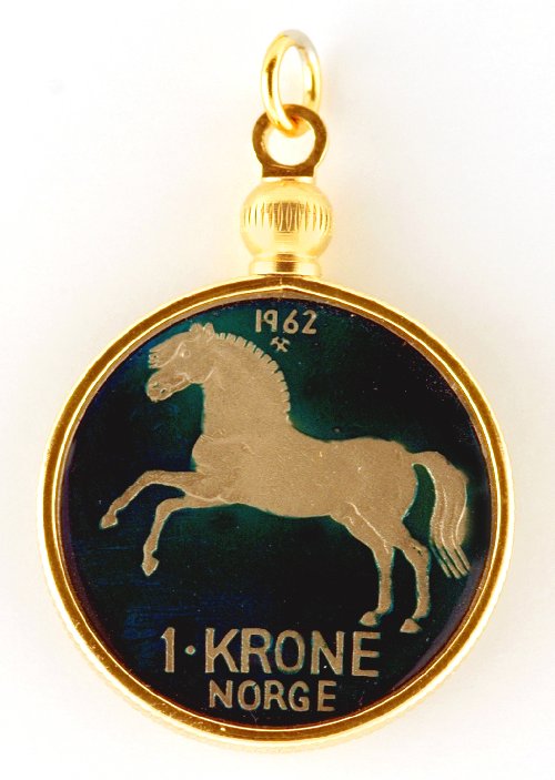 Each piece in our line of hand painted coin and medallion jewelry is crafted from a genuine coin or medallion. The multi-color hand painting comes from a very old art form from a family of artists. This family is the only known family of artists in the United States making these beautiful pieces, each of which is a gift or keepsake to treasure forever. The artists of this family have carefully selected each coin and medallion and, choosing from a selection of miniature curved and straight brushes, hand painted every minute detail that already existed on the coin or medallion. In painstaking fashion, the artists have applied color initially to the background to outline the design, followed by a high tempature firing process. The firing process is repeated after each color is applied. The hand-painting process for each piece varies with some taking as long as two days to complete. In the final stage, in order to protect the delicate hand painting, the artists have applied and baked on a covering of space age plastic, which also adds depth and luster to the item while providing protection forever.