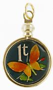 Hand Painted Papa New Guinea 1 Toea Butterfly Pendant