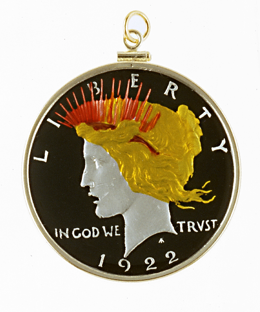 Hand Painted Peace Dollar Pendant