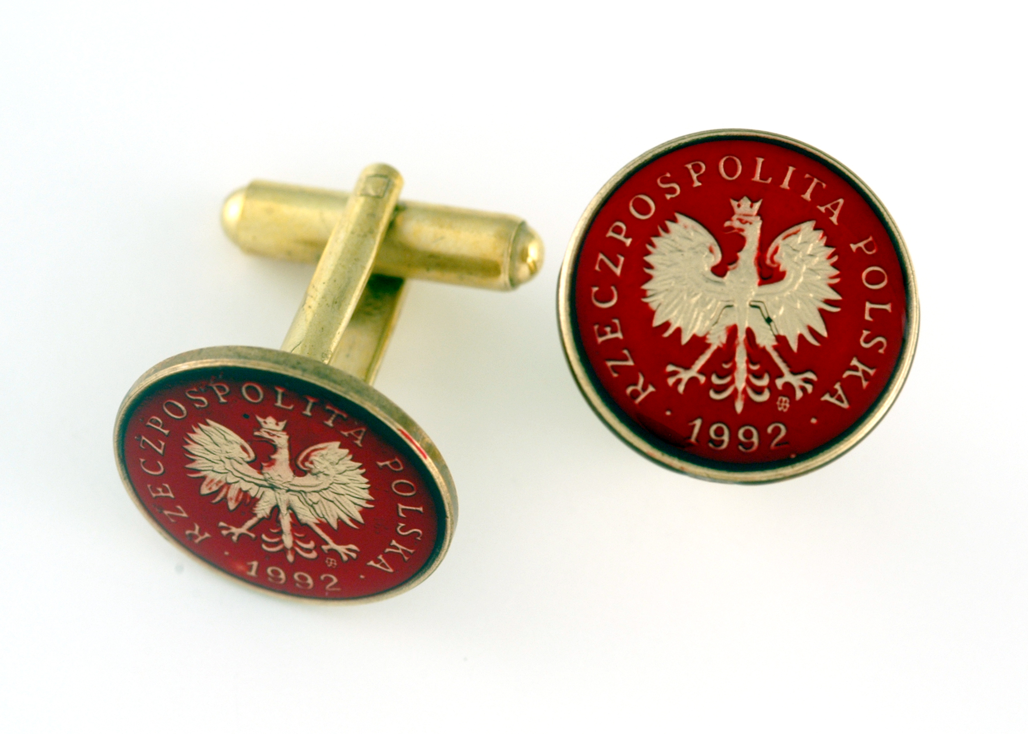 Hand Painted Poland 1 Grosz Eagle Cuff Links