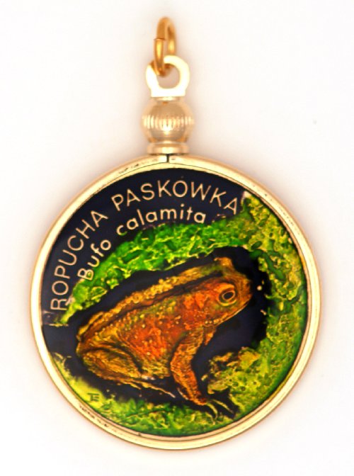 Each piece in our line of hand painted coin and medallion jewelry is crafted from a genuine coin or medallion. The multi-color hand painting comes from a very old art form from a family of artists. This family is the only known family of artists in the United States making these beautiful pieces, each of which is a gift or keepsake to treasure forever. The artists of this family have carefully selected each coin and medallion and, choosing from a selection of miniature curved and straight brushes, hand painted every minute detail that already existed on the coin or medallion. In painstaking fashion, the artists have applied color initially to the background to outline the design, followed by a high tempature firing process. The firing process is repeated after each color is applied. The hand-painting process for each piece varies with some taking as long as two days to complete. In the final stage, in order to protect the delicate hand painting, the artists have applied and baked on a covering of space age plastic, which also adds depth and luster to the item while providing protection forever.