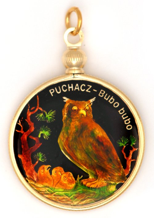 Each piece in our line of hand painted coin and medallion jewelry is crafted from a genuine coin or medallion. The multi-color hand painting comes from a very old art form from a family of artists. This family is the only known family of artists in the United States making these beautiful pieces, each of which is a gift or keepsake to treasure forever. The artists of this family have carefully selected each coin and medallion and, choosing from a selection of miniature curved and straight brushes, hand painted every minute detail that already existed on the coin or medallion. In painstaking fashion, the artists have applied color initially to the background to outline the design, followed by a high tempature firing process. The firing process is repeated after each color is applied. The hand-painting process for each piece varies with some taking as long as two days to complete. In the final stage, in order to protect the delicate hand painting, the artists have applied and baked on a covering of space age plastic, which also adds depth and luster to the item while providing protection forever.