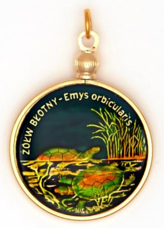 Hand Painted Poland 2 Zloty Turtle Pendant