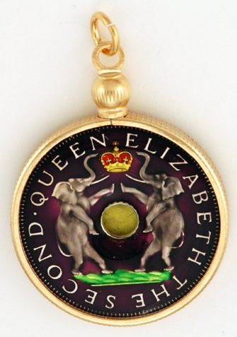 Each piece in our line of hand painted coin and medallion jewelry is crafted from a genuine coin or medallion. The multi-color hand painting comes from a very old art form from a family of artists. This family is the only known family of artists in the United States making these beautiful pieces, each of which is a gift or keepsake to treasure forever. The artists of this family have carefully selected each coin and medallion and, choosing from a selection of miniature curved and straight brushes, hand painted every minute detail that already existed on the coin or medallion. In painstaking fashion, the artists have applied color initially to the background to outline the design, followed by a high tempature firing process. The firing process is repeated after each color is applied. The hand-painting process for each piece varies with some taking as long as two days to complete. In the final stage, in order to protect the delicate hand painting, the artists have applied and baked on a covering of space age plastic, which also adds depth and luster to the item while providing protection forever.