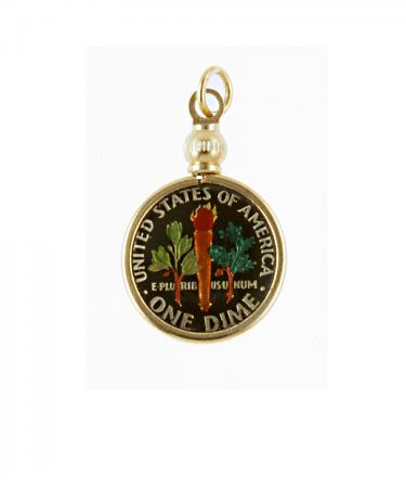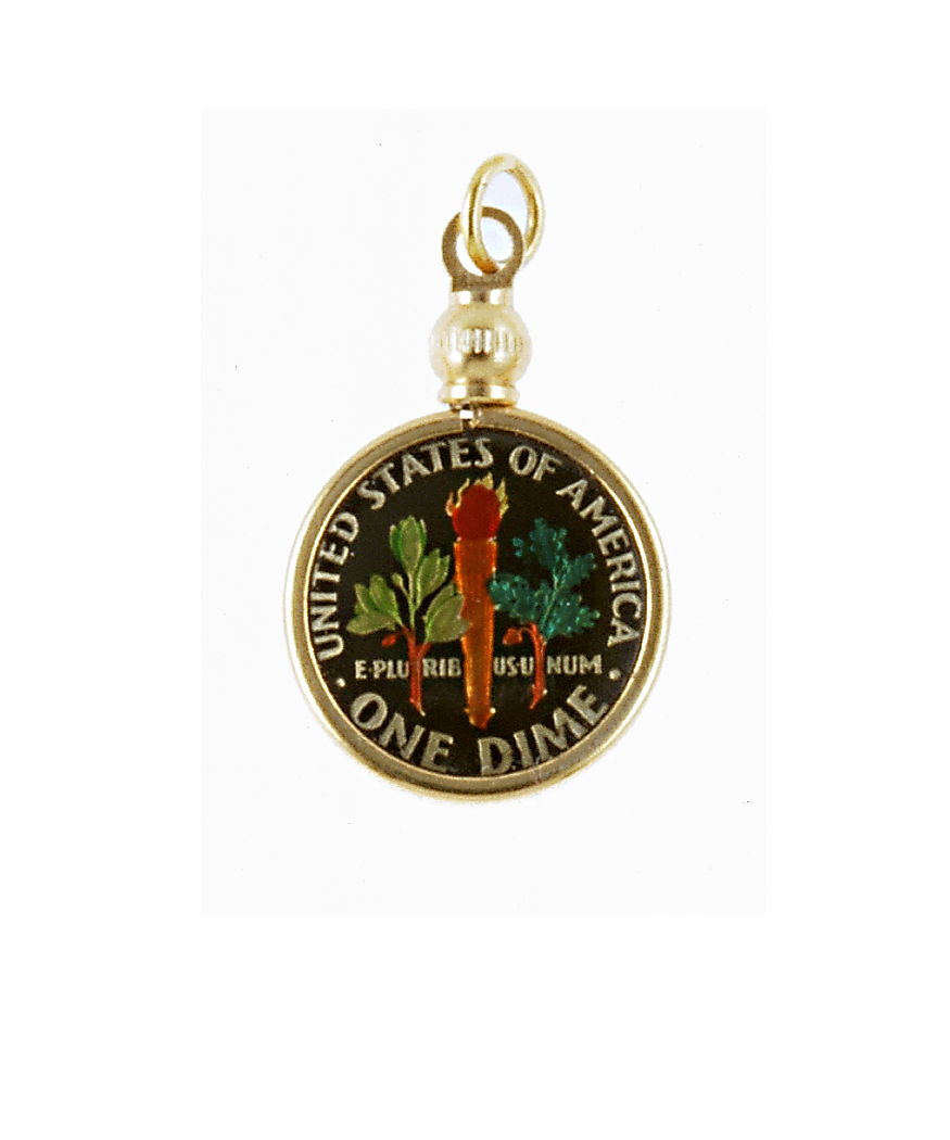 Each piece in our line of hand painted coin and medallion jewelry is crafted from a genuine coin or medallion. The multi-color hand painting comes from a very old art form from a family of artists. This family is the only known family of artists in the United States making these beautiful pieces, each of which is a gift or keepsake to treasure forever. The artists of this family have carefully selected each coin and medallion and, choosing from a selection of miniature curved and straight brushes, hand painted every minute detail that already existed on the coin or medallion. In painstaking fashion, the artists have applied color initially to the background to outline the design, followed by a high tempature firing process. The firing process is repeated after each color is applied. The hand-painting process for each piece varies with some taking as long as two days to complete. In the final stage, in order to protect the delicate hand painting, the artists have applied and baked on a covering of space age plastic, which also adds depth and luster to the item while providing protection forever.