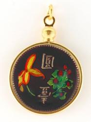 Each piece in our line of hand painted coin and medallion jewelry is crafted from a genuine coin or medallion. The multi-color hand painting comes from a very old art form from a family of artists. This family is the only known family of artists in the United States making these beautiful pieces, each of which is a gift or keepsake to treasure forever. The artists of this family have carefully selected each coin and medallion and, choosing from a selection of miniature curved and straight brushes, hand painted every minute detail that already existed on the coin or medallion. In painstaking fashion, the artists have applied color initially to the background to outline the design, followed by a high tempature firing process. The firing process is repeated after each color is applied. The hand-painting process for each piece varies with some taking as long as two days to complete. In the final stage, in order to protect the delicate hand painting, the artists have applied and baked on a covering of space age plastic, which also adds depth and luster to the item while providing protection forever.