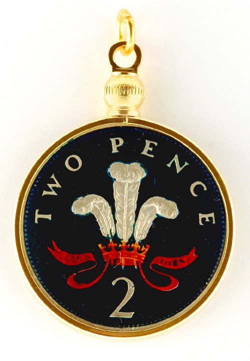 Hand Painted Scotland 2 Pence Prince of Wales Badge Pendant