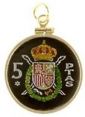 Hand Painted Spain 5 Pesetas Crown and Shield Pendant