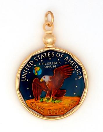 Hand Painted Susan B. Anthony Dollar Eagle on the Moon Pendant