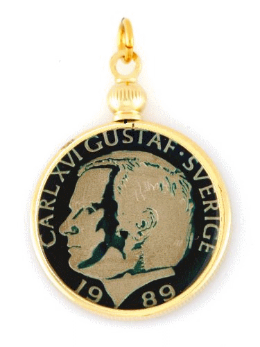 Hand Painted Sweden 1 Krona Pendant