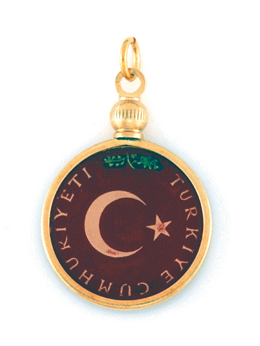 Hand Painted Turkey 10 Kurus Wheat Spears Pendant