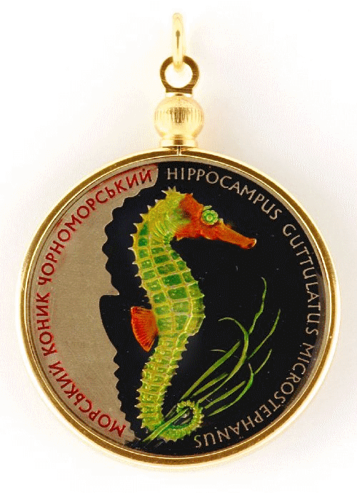 Hand Painted Ukraine 2 Hryvni Seahorse Pendant
