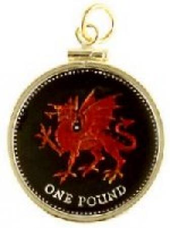 Hand Painted Wales 1 Pound Red Dragon Pendant